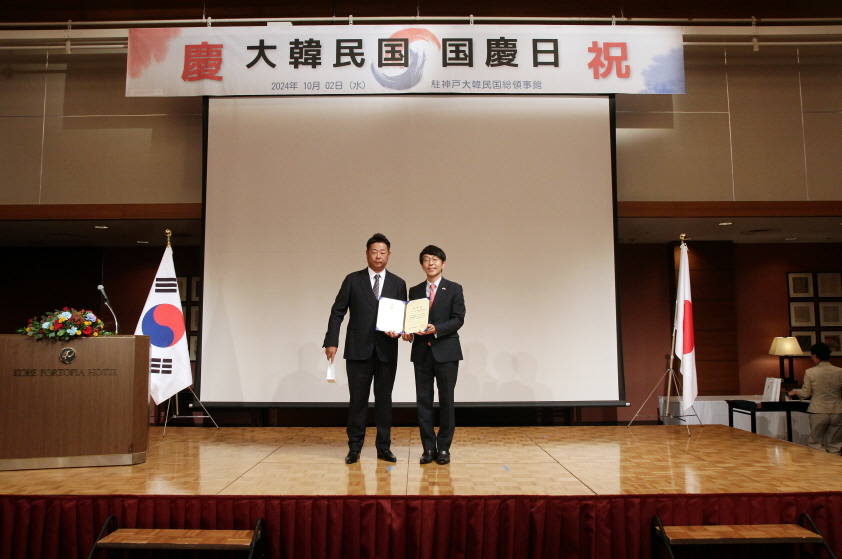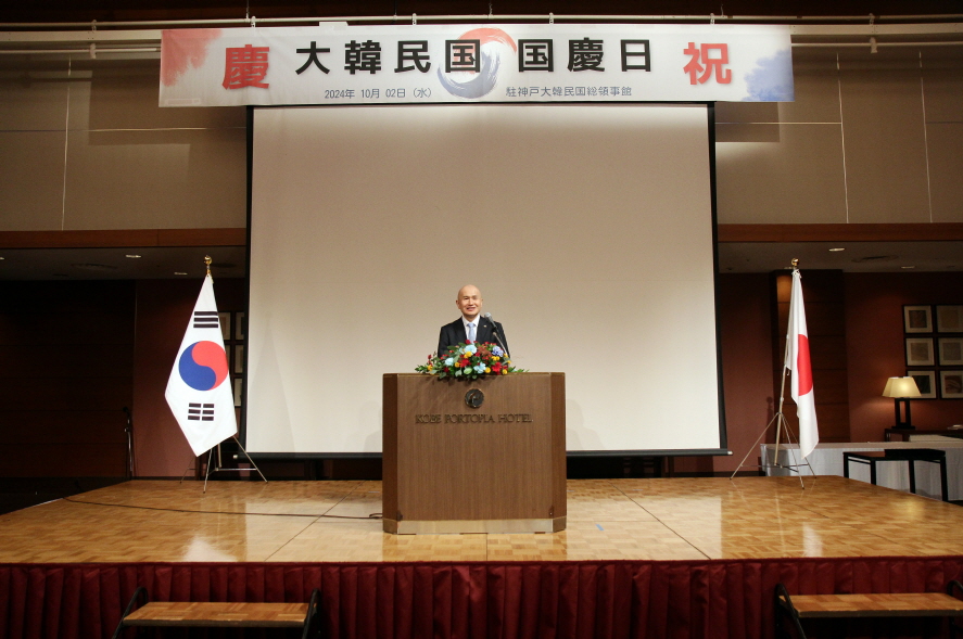 우리 총영사관은 10.2(관할지역 정·관계경제계언론학계 등 주요 인사와 우리 동포 등 160여명이 참석한 가운데 2024년도 국경일 행사를 개최하였습니다특별히 올해 행사에서는 그간 한일관계의 발전 및 우리 총영사관의 출범에 기여한 분들을 선정해 감사장을 전달하는 순서를 가졌으며참석자들은 한일 우호관계 구축 관련 양국 공로자들을 기억하고 미래의 변함없는 협력을 다짐하였습니다.